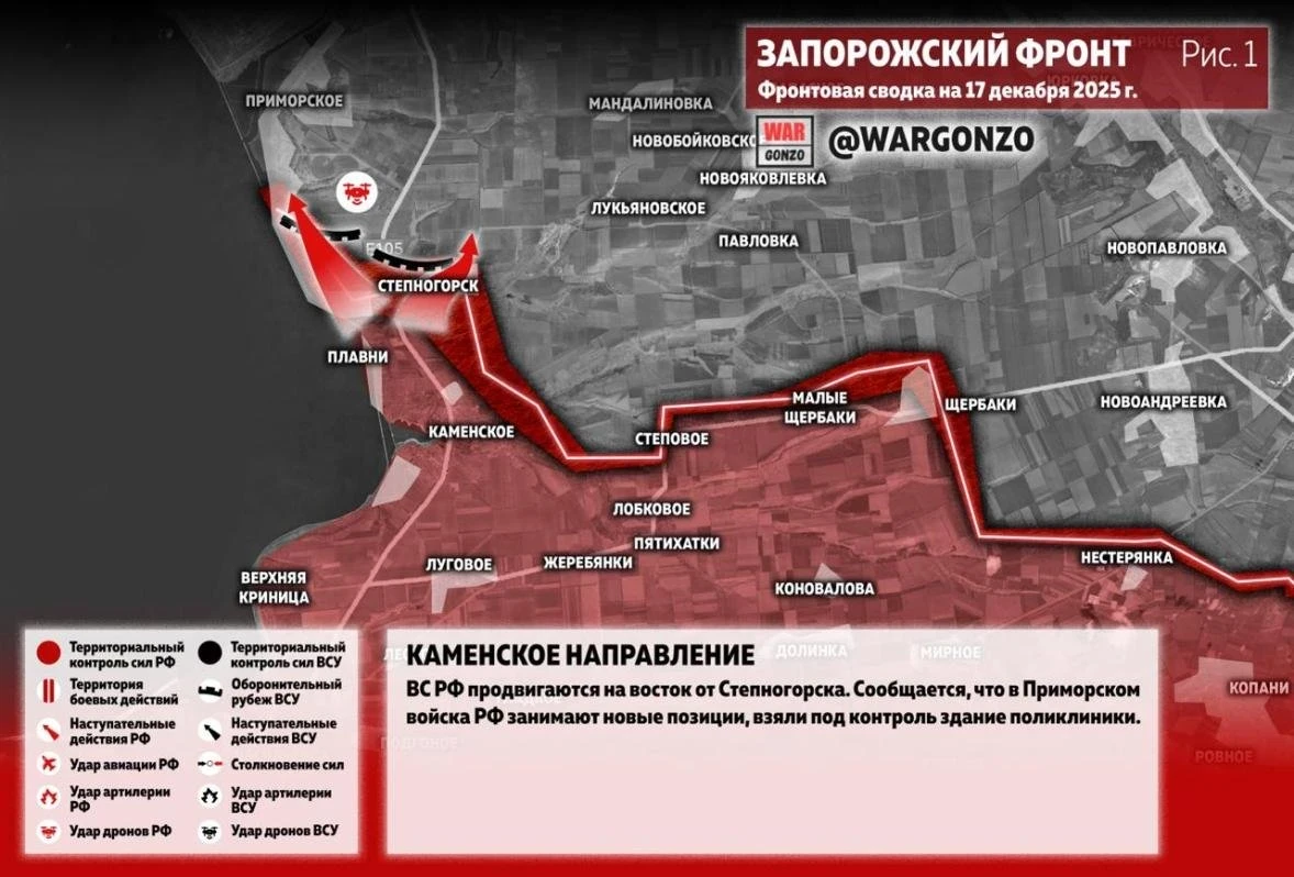 Карта боевых действий на Украине. Обстановка в зоне СВО на 17.12.2025