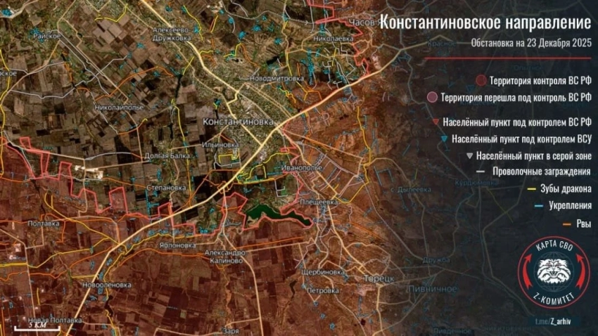 На Константиновском участке фронта отмечаются боестолкновения в Ступочках, в городской застройке Константиновки, ВС РФ давят западнее Плещеевки. Под контроль российских войск перешла территорию южнее Клебан-Быкского водохранилища. ВС РФ давят западнее Степановки, продолжаются встречные бои.
