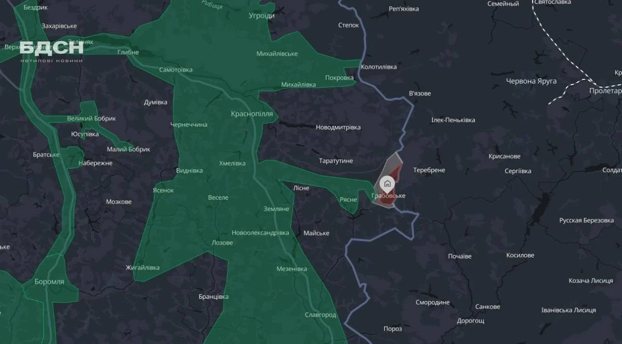 Аналитические ресурсы противника (DeepState) подтвердили переход под контроль РФ села Грабовское. Около 100 российских военных совершили внезапный рывок и закрепились в южной части села, продолжая движение в сторону Рясного.