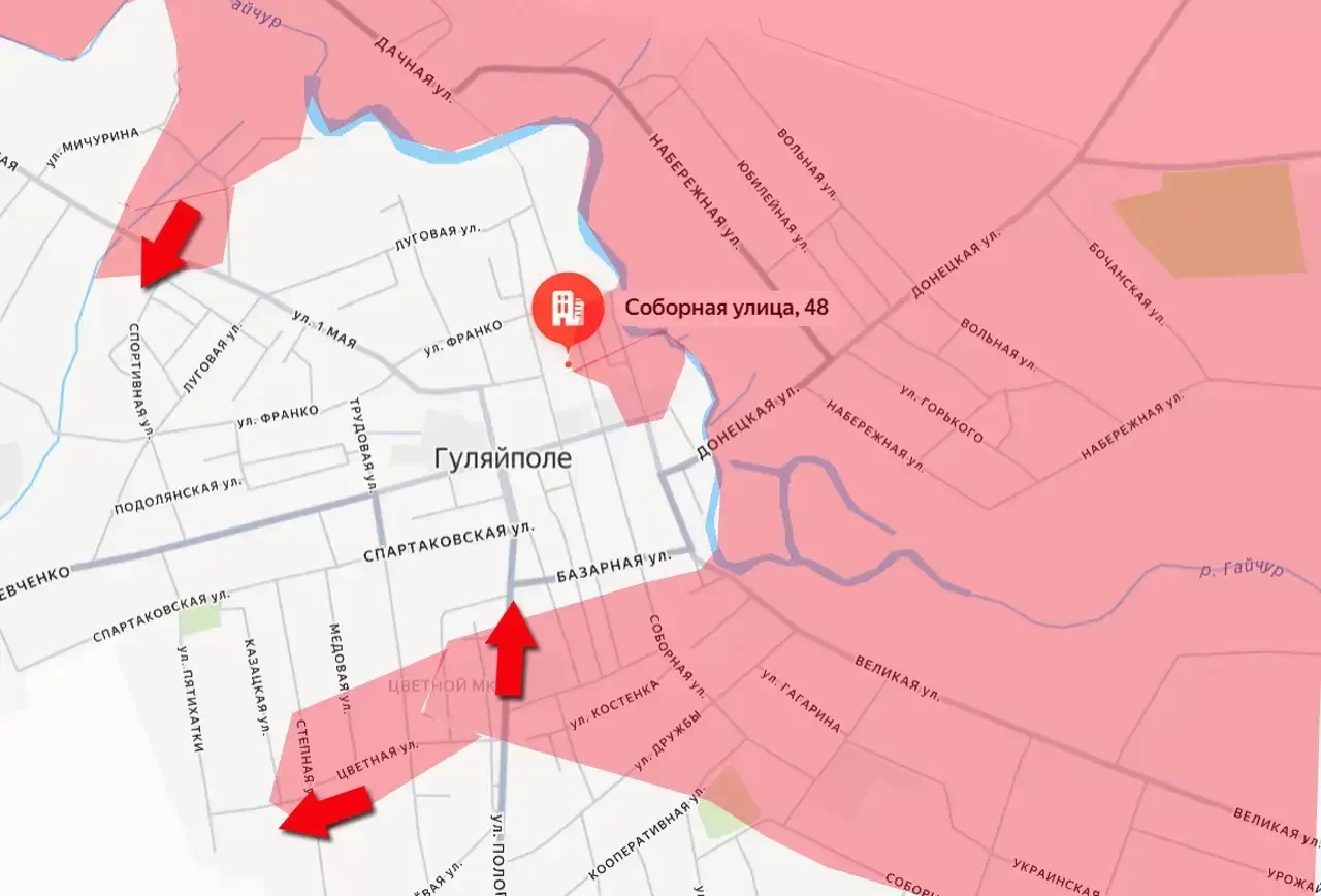 Напомним, что ранее российские войска после интенсивного огневого воздействия, подавив активность противника, форсировали протекающую через Гуляйполе реку Гайчур по «центральной оси».