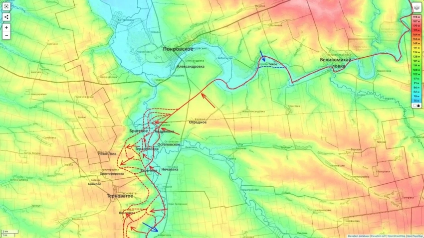 «Противнику будет крайне трудно его в текущей ситуации удержать. А освобождение Терноватого будет обозначать прорыв обороны ВСУ на реке Ганчур на оперативную глубину. А далее российским частям можно будет вводить войска и развивать этот прорыв, заходя в тыл Ореховской группировке противника с северо-востока», - проинформировал блогер.