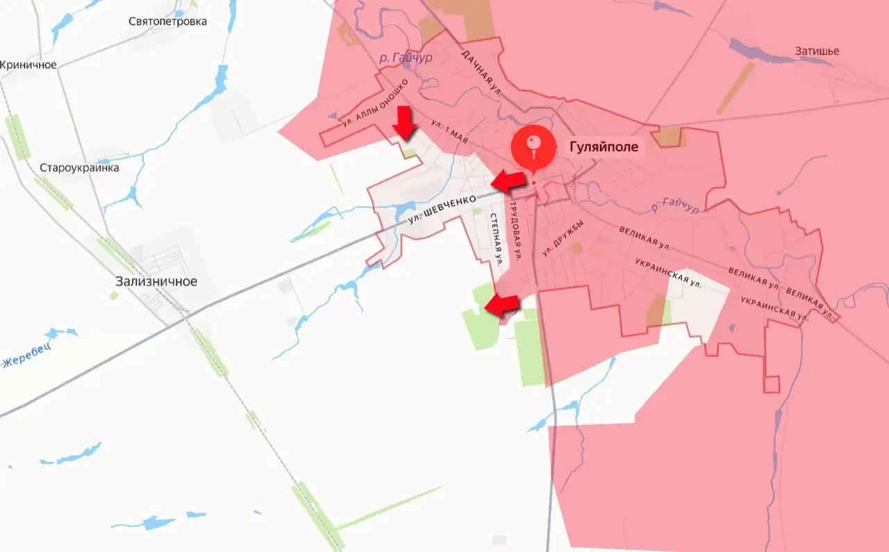 Конфигурация на карте свидетельствует о том, что под контролем наших бойцов в рассматриваемом запорожском городе уже более 80 процентов территории. Это значительный успех, который на данный момент уже не оставляет сколько-нибудь серьёзных шансов противнику сохранить за собой контроль над «городом Батьки Махно».