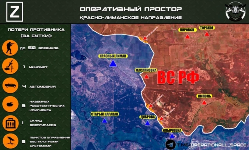 На Краснолиманском направлении сражения в районе восточной и северной окраин Красного Лимана. В районе Яровой и Дробышево - без перемен, сообщает Олег Царёв в своём Telegram-канале.