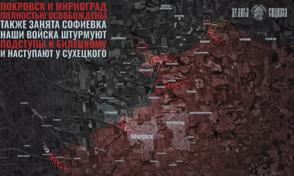 На Добропольском направлении российские войска продвинулись на севере Красноармейска. ВС РФ расширили контроль территории севернее Удачного, давят в направлении Сергеевки.