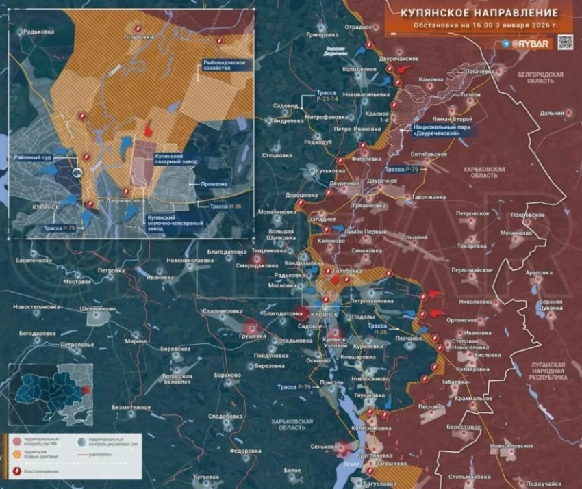 На Купянском фронте ВС РФ закрепились в жилой застройке посёлка Московка. В Купянске ситуация постепенно стабилизируется, тяжёлые бои идут в центре. В городе развернулось противостояние хорошо подготовленных расчётов ударных БПЛА. На восточном охвате города Верхнее Песчаное и Куриловка за ВСУ. На севере направления - бои в лесах между Двуречной и Кутьковкой. По рубежу Фиголевка- Красное Первое наши продвигаются к Петро-Ивановке и Нововасильевке.