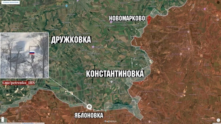 В Константиновке российские силы расширили зону контроля в районе ж/д вокзала, а также в западной части города, в районе техникума. На юге от Константиновки у наших есть успехи к востоку и югу от Берестков, на северо-востоке - отражены контратаки на Веролюбовку, идут бои южнее Фёдоровки и в Миньковке. Приходят данные, что Новомарково перешло под российский контроль.