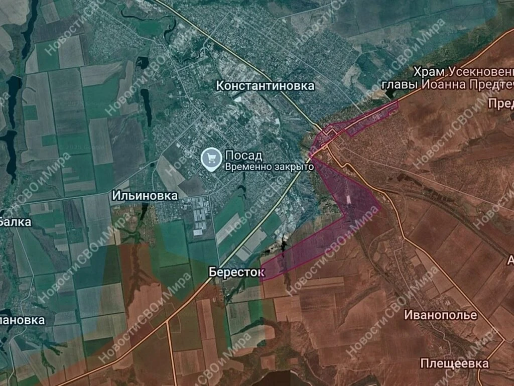 На южном фланге Константиновского направления ситуация без существенных изменений, идут бои в районе Берестка и Степановки, а также в самой Константиновке. Севернее сложной остаётся ситуация в районе Веролюбовки: ВСУ интенсивно контратакуют и часть позиций в селе переходит из рук в руки, а Клиновое и Попасное - в серой зоне. Продолжается сражение за Майское и Марково, где враг удерживает ключевые позиции на высотах севернее.