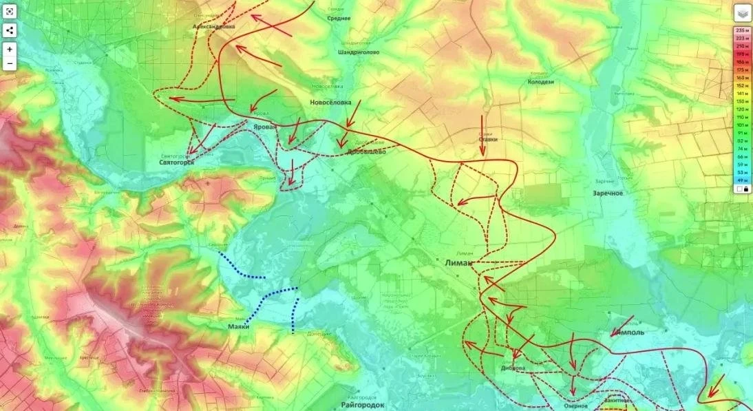 На Лиманском направлении российские войска продолжают планомерно разрушать оборону противника южнее Яровой, пытаясь выйти к переправам в районе Маяков. Параллельно идут бои за Дробышево и предпринимаются попытки закрепления на северо-восточных и восточных окраинах Лимана.
