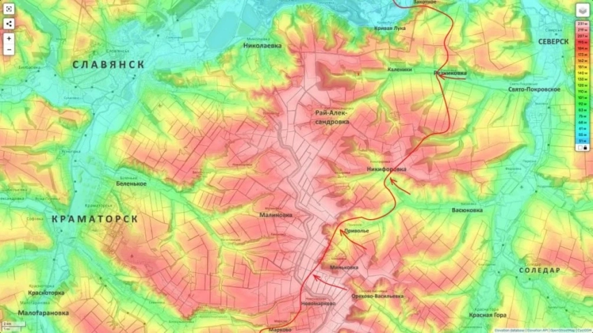 По его словам, о начале схлопывания обороны противника в районе водораздельных высот к востоку от Славянско-Краматорской агломерации можно говорить в связи с переходом под контроль войск РФ сёл Приволье и Миньковка, а также занятии ими стратегических высот в окрестностях населенного пункта Закотное.