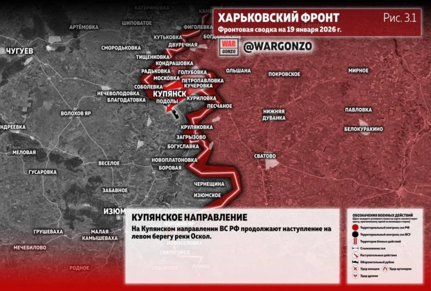 Ситуация под Купянском на сегодня: карта боевых действий на 19 января