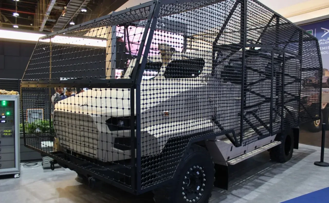 Оборонная компания Calidus из ОАЭ показала новую конфигурацию своего многоцелевого бронеавтомобиля MCAV, получившего на оснащение комплекс пассивной защиты от беспилотников Spider Net.