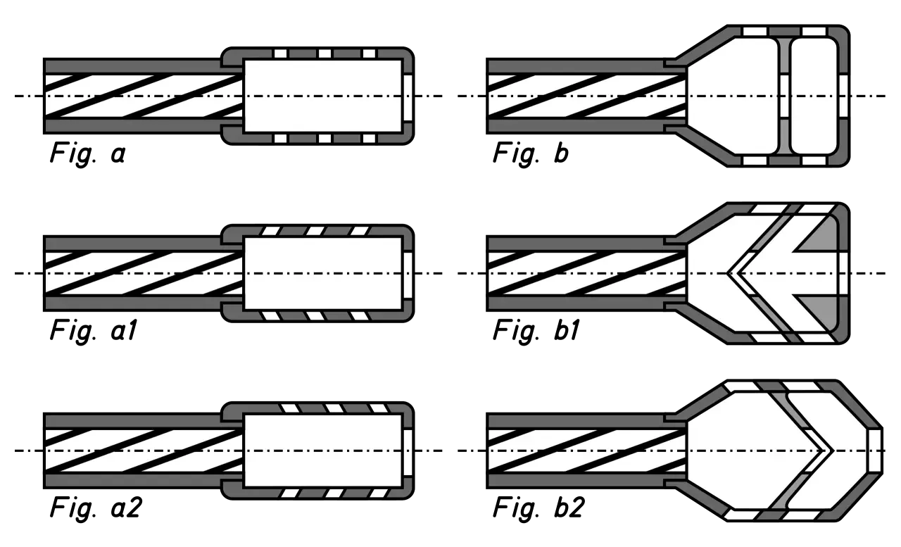 На Западе к этой идее пришли немного раньше – в 1842 году французский артиллерийский офицер Антуан-Альфред Трейль де Болё сформулировал мысль о наклонных отверстиях. До практической реализации дело дошло только спустя 20 лет одновременно с опытами в России. Испытания были проведены в 1862 году на 160-мм морской пушке, где устройство с 36 отверстиями диаметром 60 мм, наклоненными назад под углом 45°, обеспечило снижение отдачи на 75%.