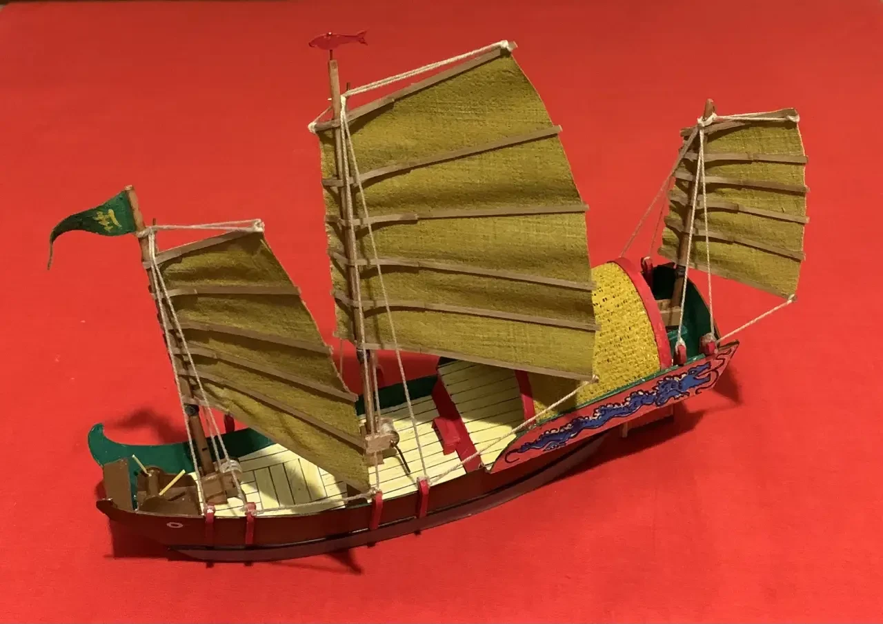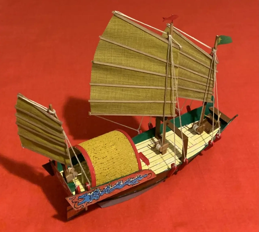 Очень простая модель китайской джонки, практически полностью сделанная из бумаги. Фотография автора