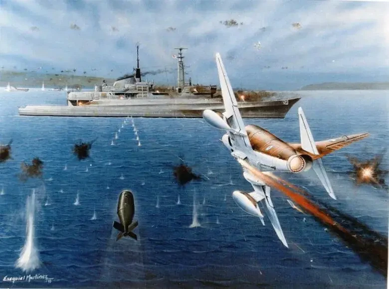 В целом можно сказать, что ВВС Аргентины показали себя наиболее профессиональным родом войск. Лётчики проявляли силу духа, мужество и героизм, выходя в атаки на предельно малой высоте на хорошо прикрытое ПВО и истребителями ударное соединение. Они несли огромные потери, но вновь и вновь шли в полёт, шансов не вернуться из которого было сильно больше, чем остаться в живых.