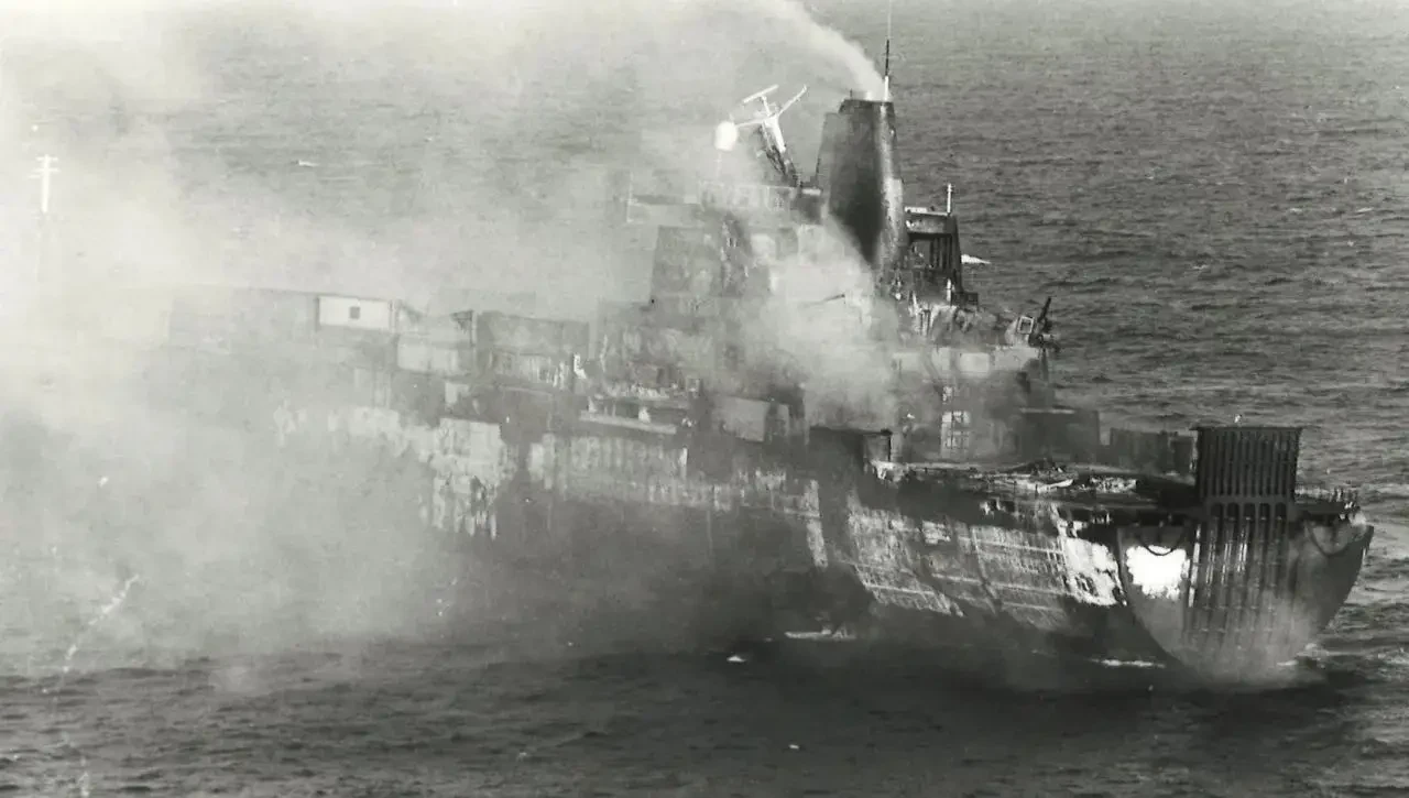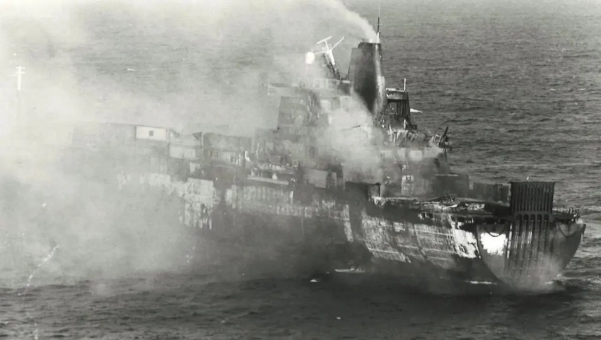 После того как пара ракет отправила транспорт на дно, британскому десанту пришлось топать к Порт-Стэнли пешком (а кроме того — есть сухпайки, спать под открытым небом и обходиться без полевых сортиров: полевые кухни, палатки и туалеты также утонули). Всего на дно пошло техники и имущества на 100 миллионов фунтов. Интересно в этом то, что в контейнеровоз аргентинские пилоты не целились: они хотели попасть во фрегат типа 21 «Эмбаскейд», но тот выпустил пассивные помехи, которые и увели ракеты в «Атлантик Конвейер»...