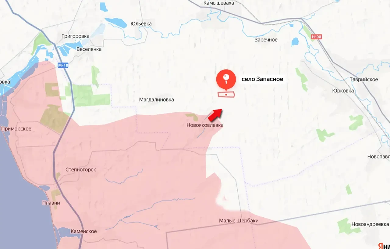 Запасное находится менее чем в 9 км от ключевой для противника автомобильной дороги Запорожье-Орехов. С каждым новым километром продвижения ВС РФ ситуация для Ореховского гарнизона ВСУ осложняется. И как только эта дорога (Н-08) будет перерезана физически или основательно заблокирован трафик по ней с помощью огневых средств, враг в Орехове лишится главной своей артерии снабжения.