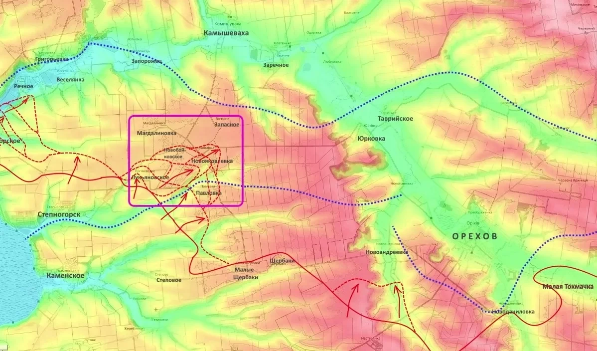 Ожидается, что после полной зачистки Магдалиновки и Запасного противник будет вынужден отступить к линии реки Конка, опираясь на рубеж Речное - Веселянка - Запорожец - Камышеваха - Заречное. Это отступление откроет российским войскам дорогу на Юрковку и позволит выйти в тыл Ореховской группировке ВСУ, что является одной из главных целей текущей операции.
