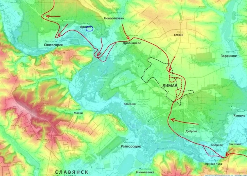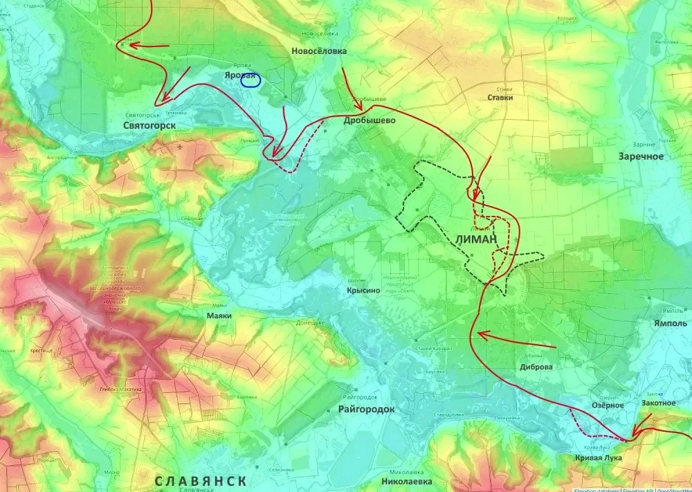 Дополнительное давление на район усиливается за счёт продвижения подразделений группировки «Юг» со стороны Веролюбовки. В совокупности эти действия указывают на формирование второго кольца охвата Константиновки, а также на создание условий для оперативного окружения Алексеево-Дружковки, Дружковки и более чем десяти малых населённых пунктов, которые рискуют оказаться в так называемом «огневом мешке».