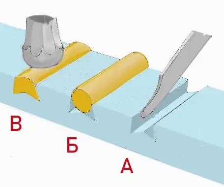 Углубления можно насекать и режущей кромкой специального чекана, вот только при такой работе образуется заметная гряда облоя. Его можно зачистить и заполировать. А можно простучать молотком и завалить внутрь прорезанной линии, что позволит прочнее зафиксировать проволоку в канавке. Наконец, можно вбить проволоку в прорезь, сохранив облой на закраинах, а затем пройтись по поверхности рисунка сначала молотком, после чего зачистить ее напильником и наждачной бумагой. Дополнительная проходка тем же чеканом окончательно впрессовывает деталь в углубление.