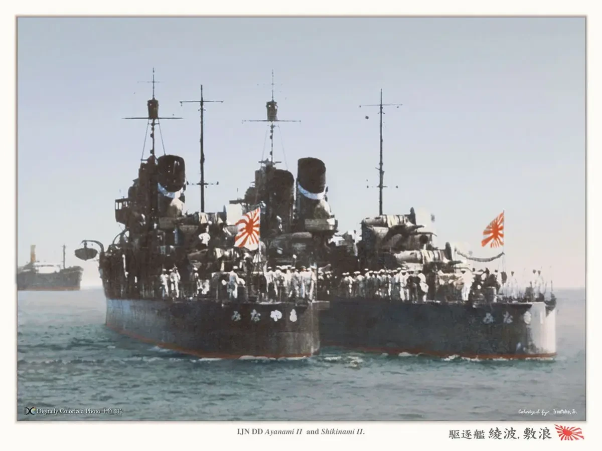 Мы продолжаем. Вторая часть «Фубуки», которая так и называлась – Тип II. Или по имени первого корабля – «Аянами». Различия были минимальными. «Аянами», построенный на верфи Фудзинагата в Осаке, был первым в улучшенной серии, в которой использовалась модифицированная орудийная башня Тип 3 или Тип D, конструкция которой позволяла поднимать стволы 127-мм морских орудий Тип 3 с длиной ствола 50 калибров на 75° по сравнению с первоначальными 40°, что позволяло использовать орудия против самолётов. «Аянами» был первым в мире эсминцем с такой возможностью использования «универсалок», но - теоретически.