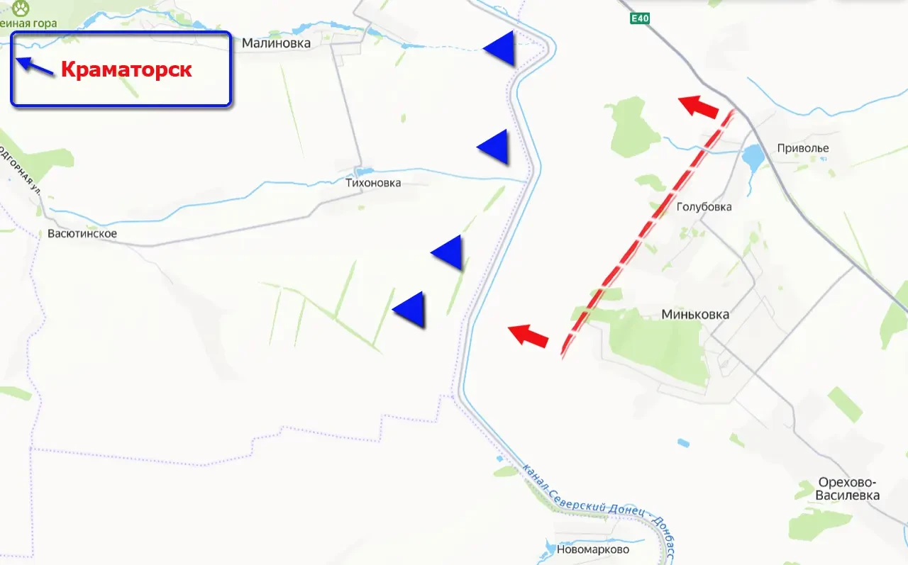 Причём продвижение это идёт с нескольких направлений. Одно из них – со стороны Приволья и Миньковки, где от канала Северский Донец – Донбасс, к которому вышли ВС РФ, до окраины Краматорска расстояние составляет примерно 11 км.