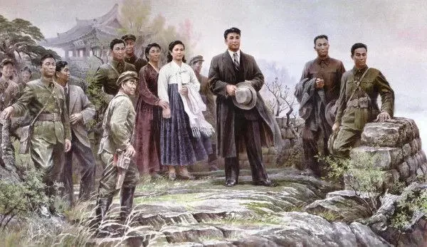 Ким Ир Сен (в заднем ряду в центре) со своими партизанами