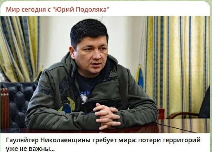 Со своими заявлениями и призывами стали выступать даже губернаторы и гаулейтеры. В частности, глава ОВА Николаевской области Ким на днях призвал соглашаться на любой мир со дачей регионов, потому что "люди устали", а армия не вывозит.