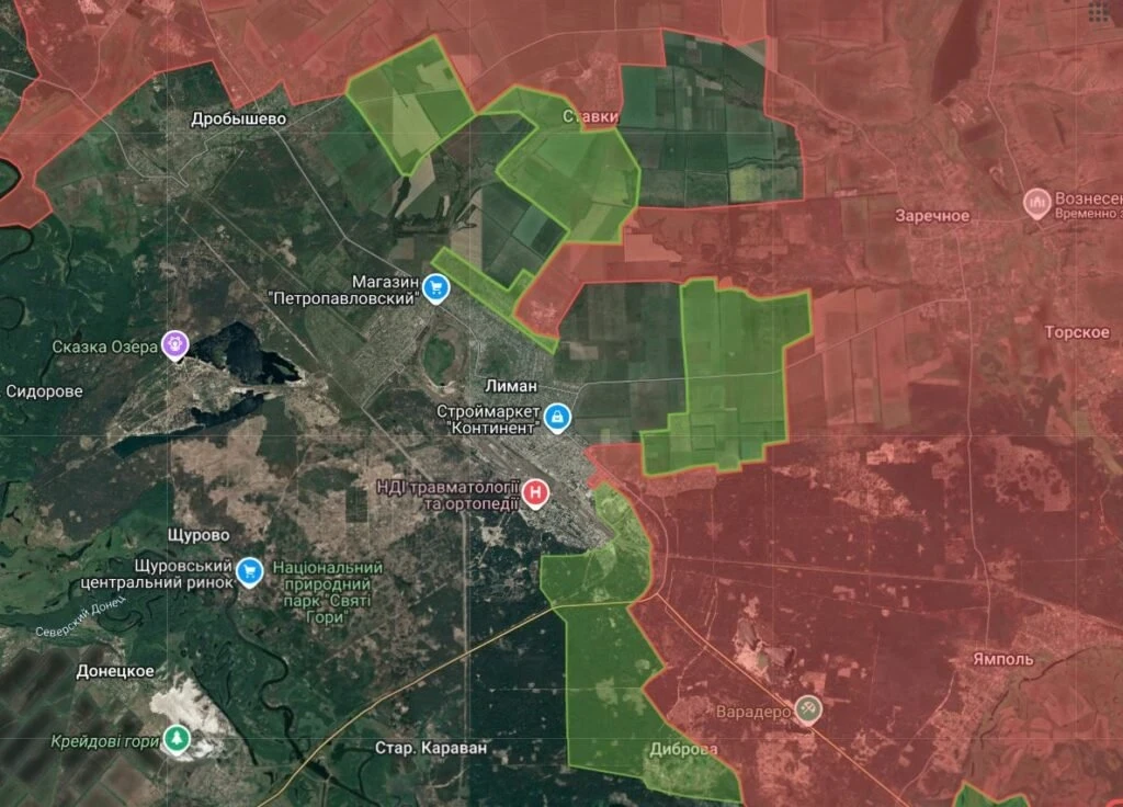 Армия России ведет бои за город Красный Лиман, куда ВСУ пытаются подтягивать дополнительные силы, но наши операторы дронов держат под огневым контролем основные дороги в город. ВС РФ расширили подконтрольную территорию к западу от Ставков, в Дробышево ведут бои в районе школы, а в Святогорске - у госпиталя, его территория в серой зоне.