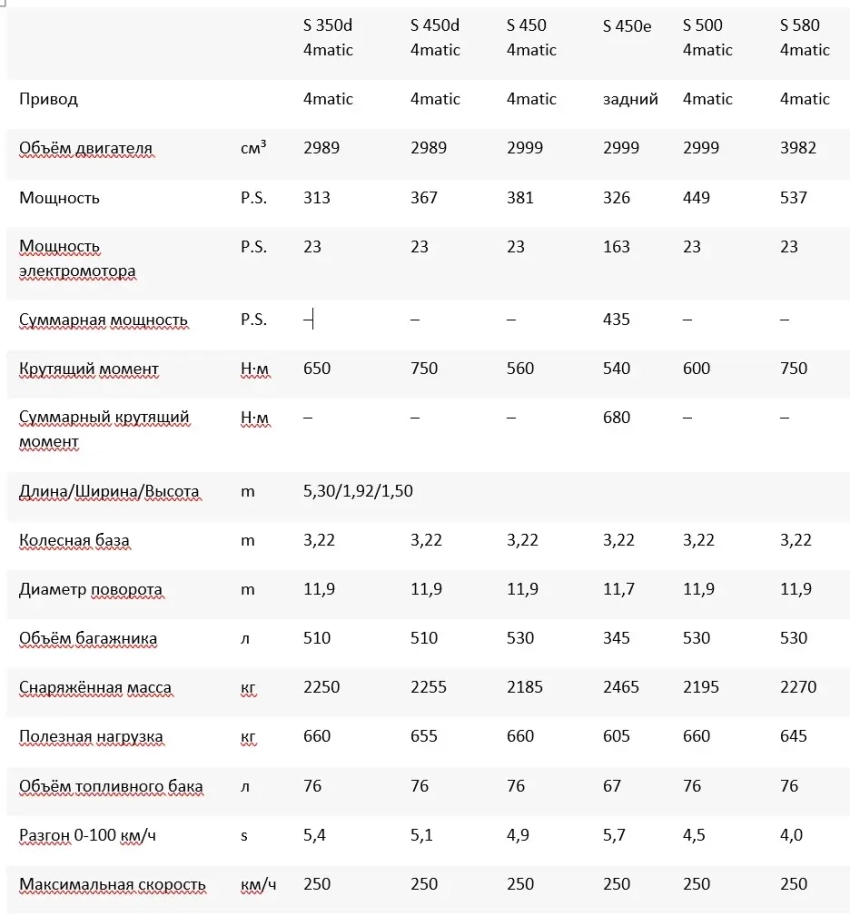Технические данные S-Class long (V223) 2026 года
