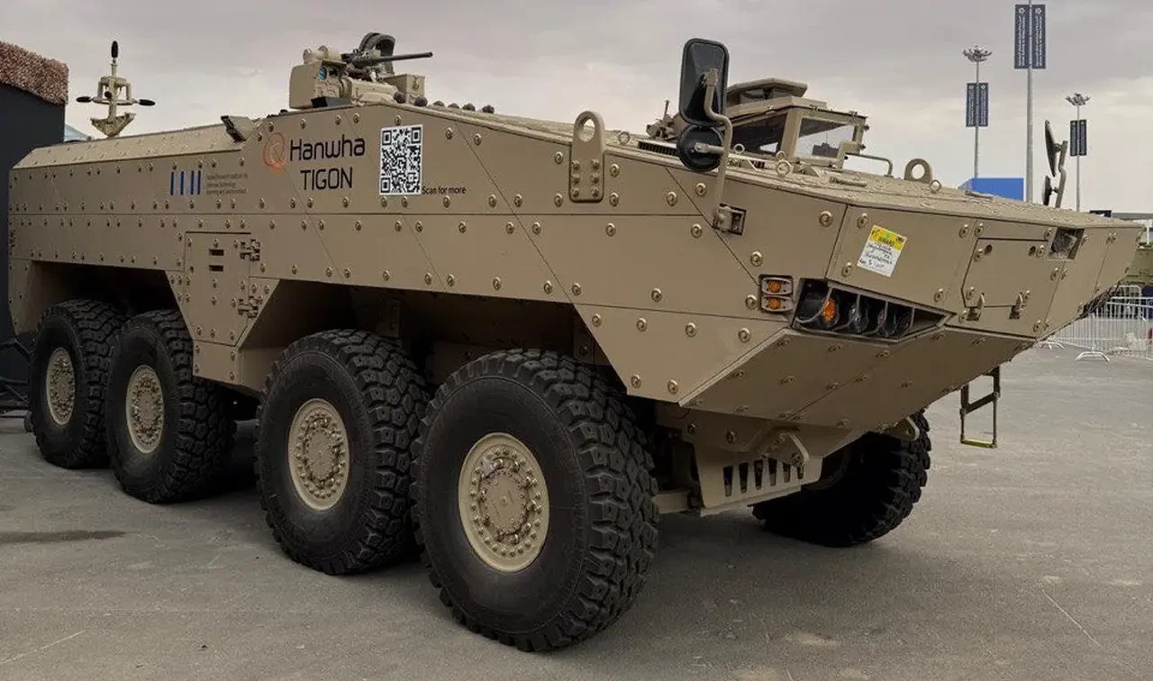 На выставке WDS 2026 в Эр-Рияде южнокорейская компания Hanwha Aerospace представила особую конфигурацию бронемашины Tigon 8х8, способную обнаруживать огонь противника.
