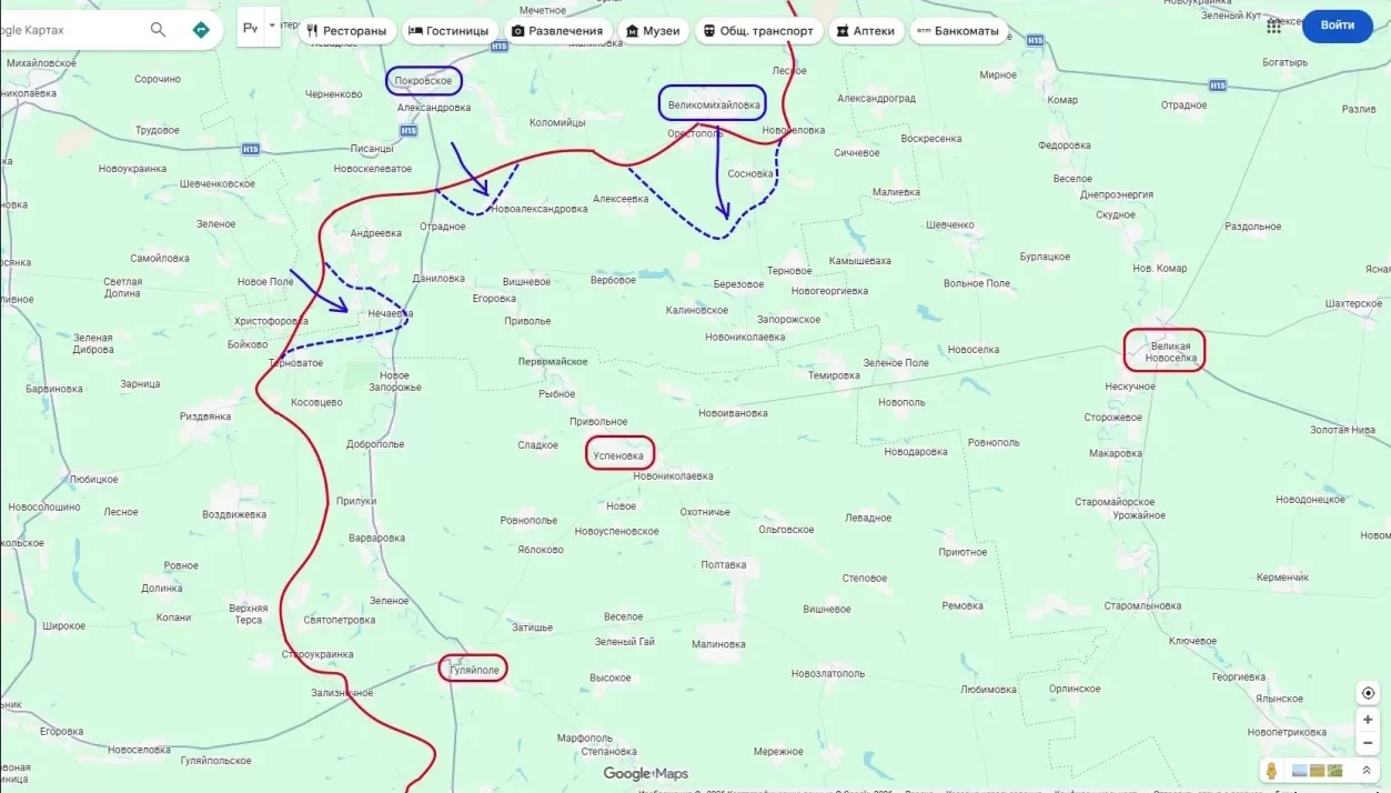 Опираясь на логистические узлы в Покровском и Великомихайловке, ВСУ пытаются ударить в тыл группировки «Восток». На данный момент наибольшего продвижения враг добился в районе Новомихайловки, где ему удалось отбросить наши передовые заслоны у Аристополя и Сосновки.