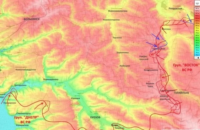 По его оценке, потеря этих населённых пунктов может осложнить положение украинских подразделений и вынудить их отойти на новые оборонительные рубежи. Одновременно продолжаются боевые действия в районе Гуляйполя и Верхней Терсы.