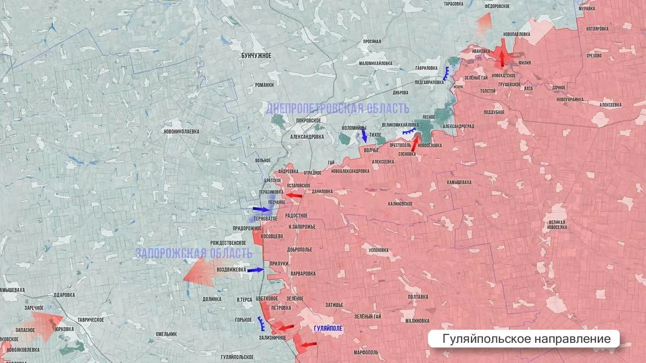 Наиболее динамичная ситуация складывается на Гуляйпольском направлении. На рубеже Зализничное - Терноватая идут тяжелые встречные бои. Попытки ВСУ контратаковать у Зализничного захлебнулись.