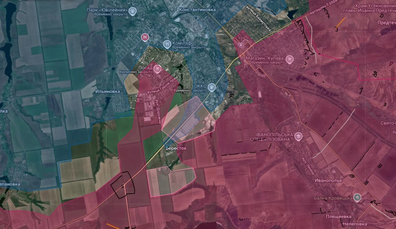 На Константиновском направлении основные боевые действия разворачиваются между населёнными пунктами Миньковка и Голубовка. По имеющимся сведениям, российские подразделения увеличили зону контроля на этом участке и продолжают продвигаться в районе Орехово-Васильевки.