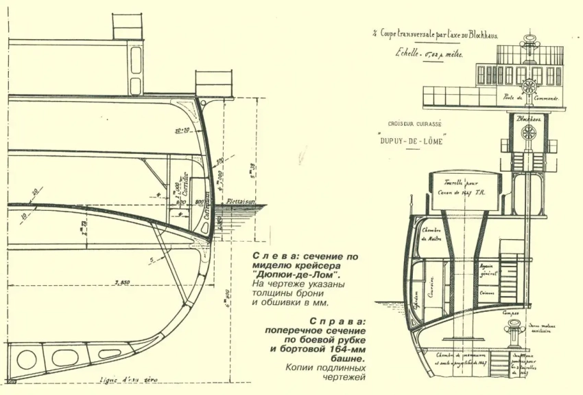 Наглядный пример — «Дюпюи-де-Лом», с бортом, защищённым 100-мм броней от ватерлинии до верхней палубы, при нормальном водоизмещении 6400 тонн.