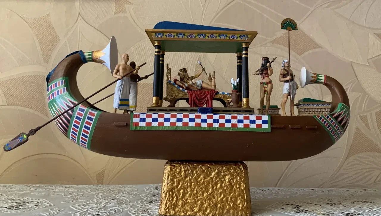 Поэтому выбор пал на египетскую ладью с фигурками людей, вроде тех, что были найдены в египетских гробницах и экспонируются сегодня в самых известных музеях мира, включая и наш Пушкинский музей в Москве.