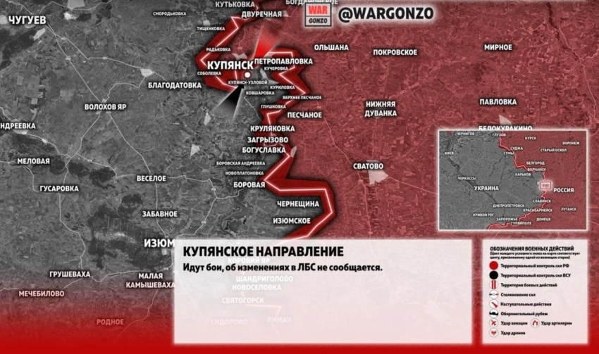 - В целом охраняются локальные бои в пределах Купянска;