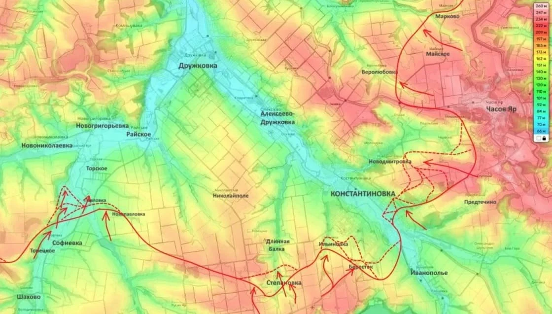 Блогер назвал «большим сражением» боевые действия в центральной части города. Согласно сведениям Подоляки, российские военные действуют малыми группами, рассредоточиваясь и накапливая силы в центре Константиновки.