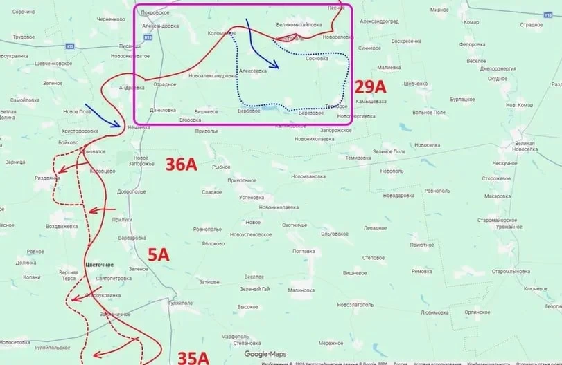 Ещё один участок активных боёв - район Малиновки, расположенной примерно в двадцати километрах от Рай-Александровки. Продвижение здесь может усилить давление на оборону ВСУ и расширить возможности для дальнейшего наступления.