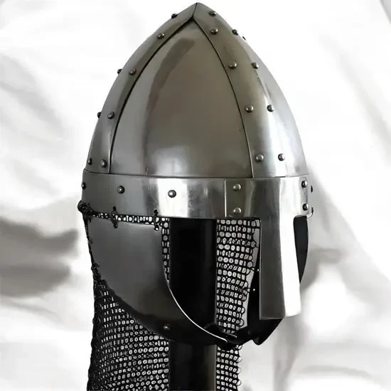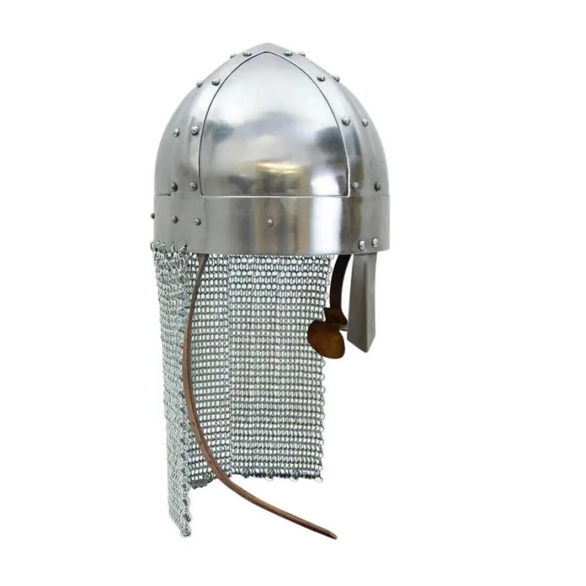 Несколько более сложный шлем этого же типа с наушниками и бармицей. Интересно, что именно в таких вот шлемах западноевропейские рыцари как раз и брали Иерусалим!