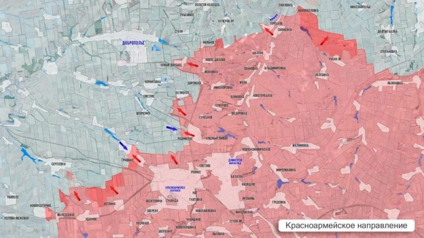 Российские штурмовые группы в Дробышево отбросили врага за железную дорогу и ведут зачистку центральной части. Зафиксировано значительное продвижение в Яровой и расширение зоны контроля южнее Новоселовки. В самом Красном Лимане продолжается выравнивание линии фронта и ликвидация «карманов» на северных и северо-восточных окраинах.