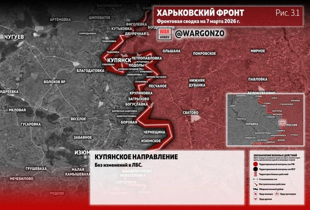 Карта боевых действий на Купянском направлении: свежие данные на 07.03.2026