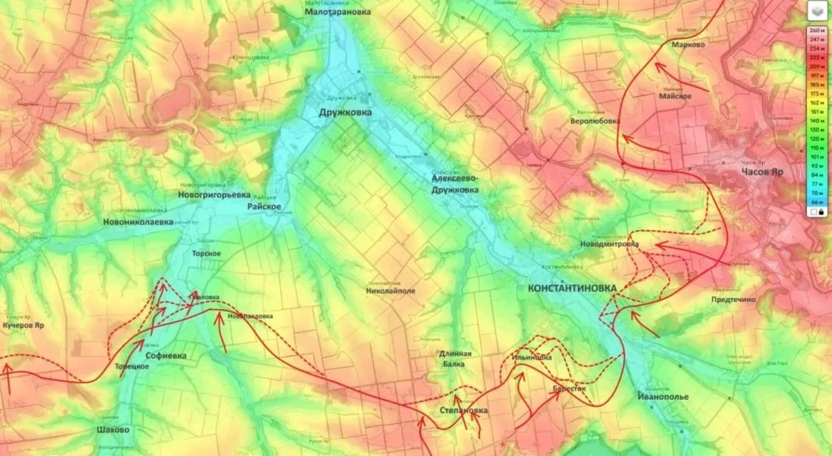 Таким образом, продолжается фланговый охват одного из важнейших для ВСУ на оккупированной территории ДНР форпоста - города Константиновка. Ранее сообщалось об успехах наших войск на северных подступах к Константиновке - в селе Новодмитровка.