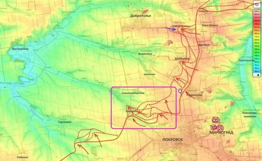 Одновременно поступают данные об усилении давления ВС РФ на Долгую Балку с восточного направления. Это село расположено немного юго-западнее Ильиновки, через которую, помимо прочего, проходит дорога, соединяющая Константиновку и Долгую Балку.