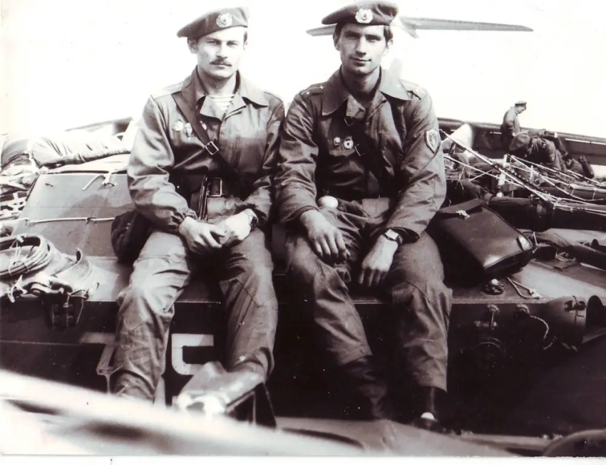 На фото слева — гвардии лейтенант Александр Колотило, справа — будущий командир 7-й парашютно-десантной роты «Полтинника», гвардии лейтенант Леонид Верединский