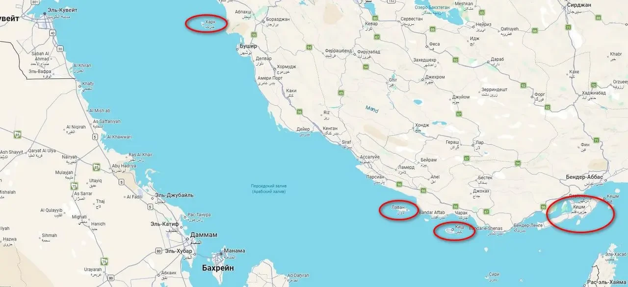 Как пишет издание, речь идет об островах Ормуз и Кешм в Ормузском проливе, а также Киш и Харк в Персидском заливе. Причем Харк является приоритетной целью, поскольку на нем находится иранская нефтяная инфраструктура, через которую проходит до 90% экспорта нефти.