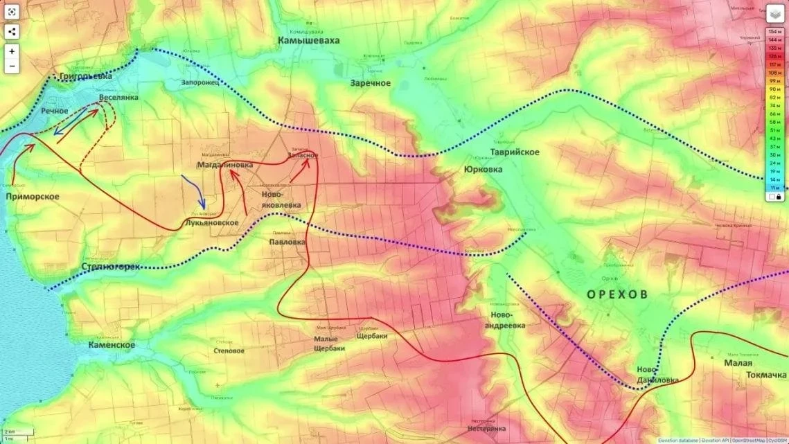 В полосе группировки «Днепр» идёт зачистка Веселянки, Магдалиновки и Запасного. Подоляка связывает эти действия с подготовкой плацдарма для наступления в обход Орехова и дальнейшего выхода к Запорожью с фланга.