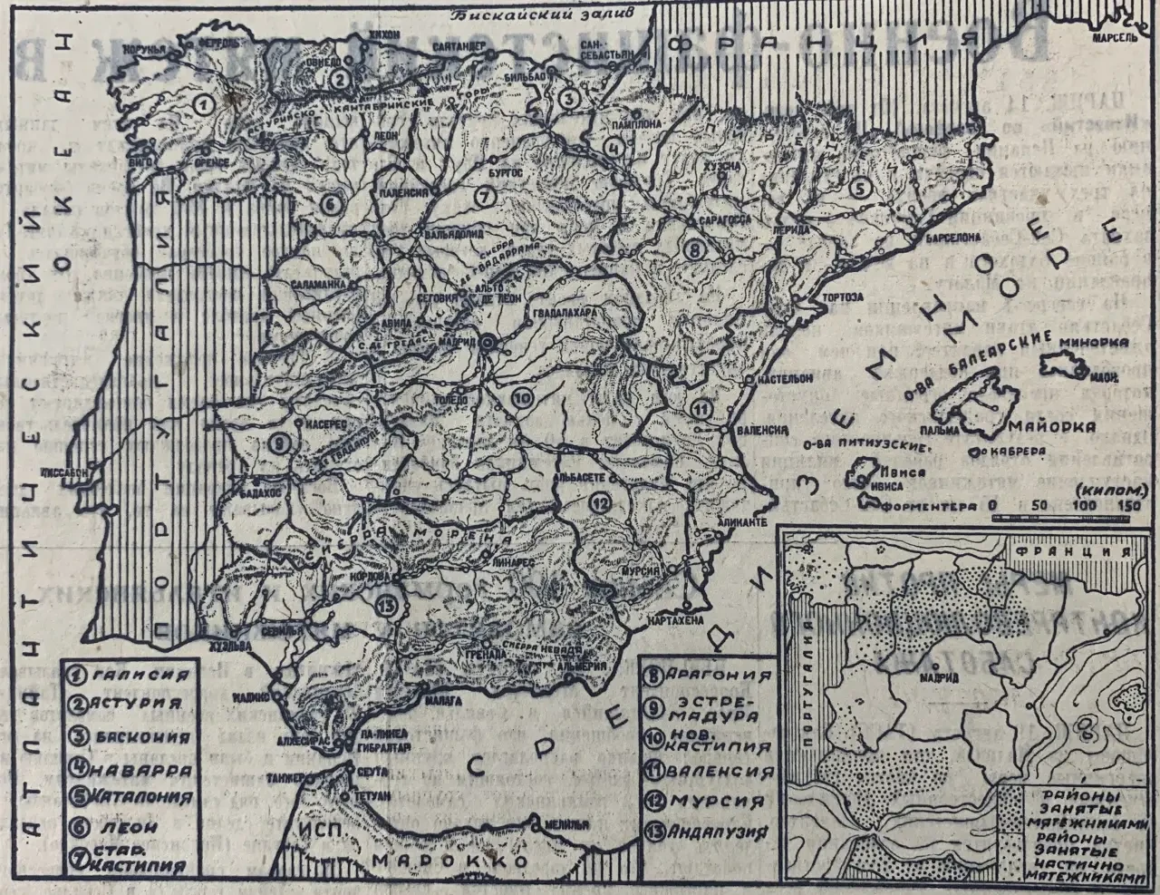 Получив оружие, сторонники республики резко активизировались, в итоге мятежники во многих городах были разбиты, правительство сумело удержать более 70 % территории страны. Но мятежники удержали свои позиции в Галисии, Наварре и Старой Кастилии – то есть в наиболее консервативных регионах, а также на части Андалусии и Арагона. Во всех промышленно развитых районах Испании мятеж успеха не имел.