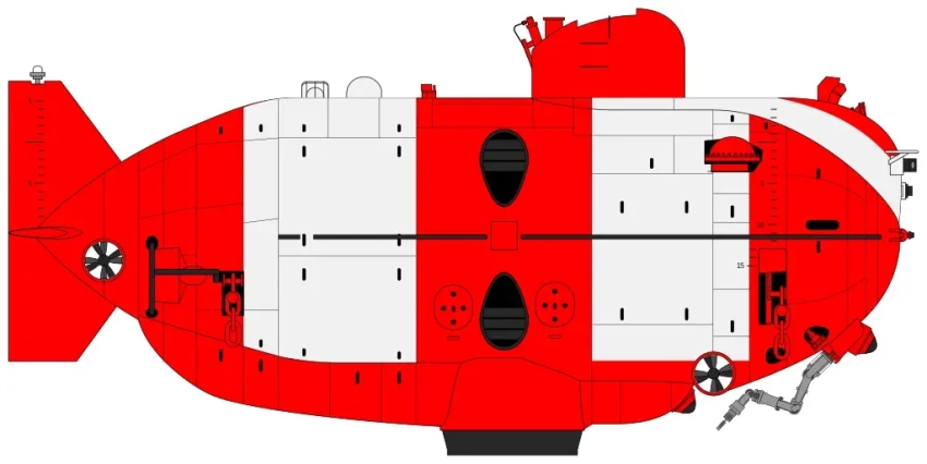 За ограждением прочной рубки находится высокий банкет с местами для размещения двух спасательных глубоководных аппаратов и защиты их от волнения моря вплоть до 8 баллов.