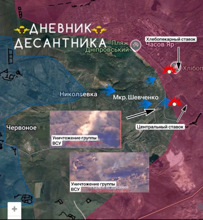 Воздушно-космические силы (ВКС) России наносят массированные удары по объектам в Константиновке. В районе Часова Яра идут тяжелые встречные бои: ВСУ перебросили сюда крупные резервы, пытаясь удержать сам город и господствующие высоты западнее него.